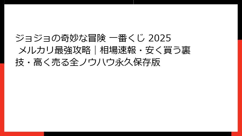 ジョジョの奇妙な冒険 一番くじ 2025 メルカリ最強攻略|相場速報・安く買う裏技・高く売る全ノウハウ永久保存版