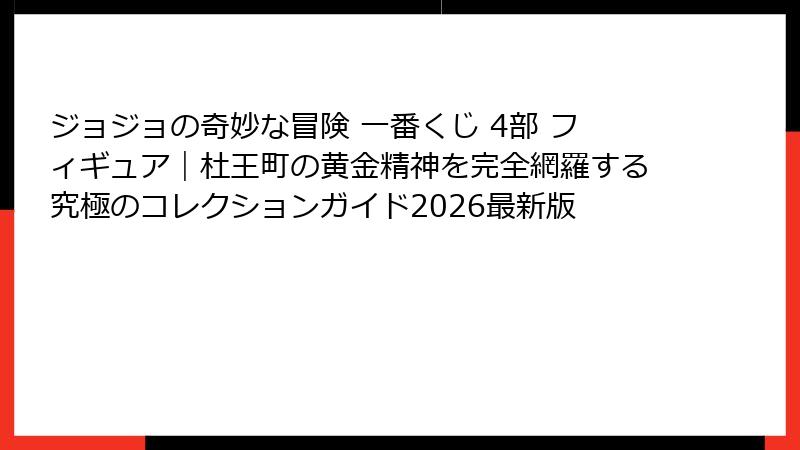 2026年に予定されている最新シリーズ-STAND RUSH!-への期待も込めて、ジョジョの奇妙な冒険 第4部 一番くじフィギュアの魅力を余すところなくお伝えします。
