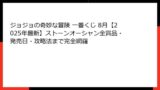 この記事では、ジョジョの奇妙な冒険の全体像から始め、第4部の詳細なストーリーやキャラクターの魅力、そして一番くじの仕組みやフィギュアの人気の理由を徹底的に掘り下げていきます。