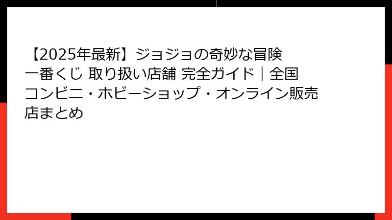 - 【最新】2025年 ジョジョの奇妙な冒険 一番くじ どこで買える?取り扱い店舗まとめ