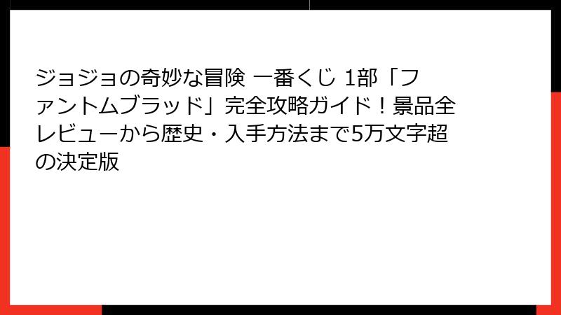 ジョジョの奇妙な冒険 一番くじ 1部「ファントムブラッド」完全攻略ガイド!景品全レビューから歴史・入手方法まで5万文字超の決定版