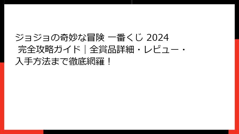 - ジョジョの奇妙な冒険 一番くじ 2024の入手方法と攻略ガイド