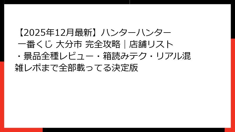 - 【2025最新】大分市でハンターハンター一番くじが開催決定!いつどこで引ける?全情報まとめ