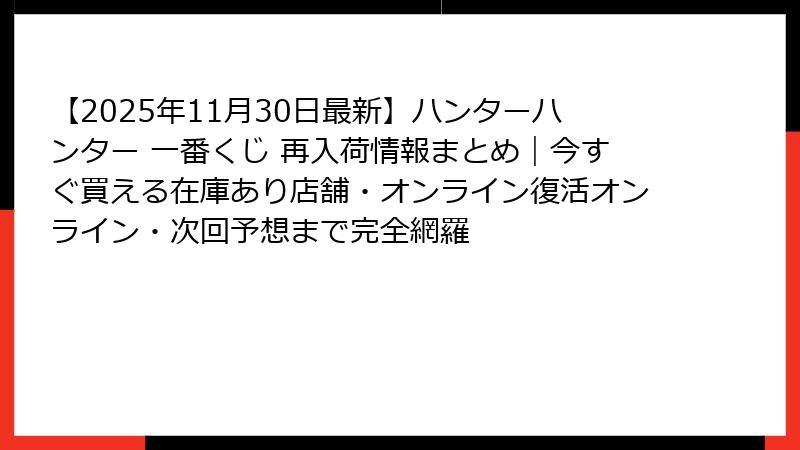 1. 2025年11月30日21時時点の緊急速報:再入荷ラッシュが止まらない!ハンターハンター一番くじの全シリーズ在庫状況を一挙公開