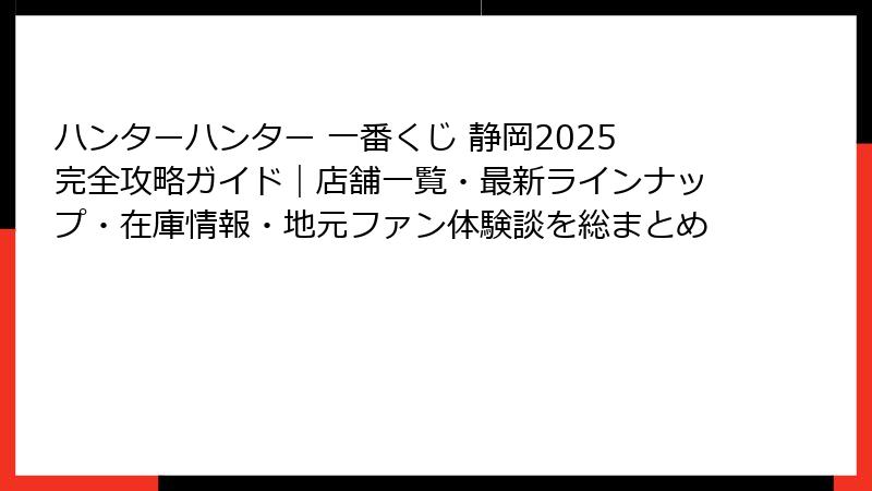 ハンターハンター 一番くじ 静岡2025完全攻略ガイド|店舗一覧・最新ラインナップ・在庫情報・地元ファン体験談を総まとめ