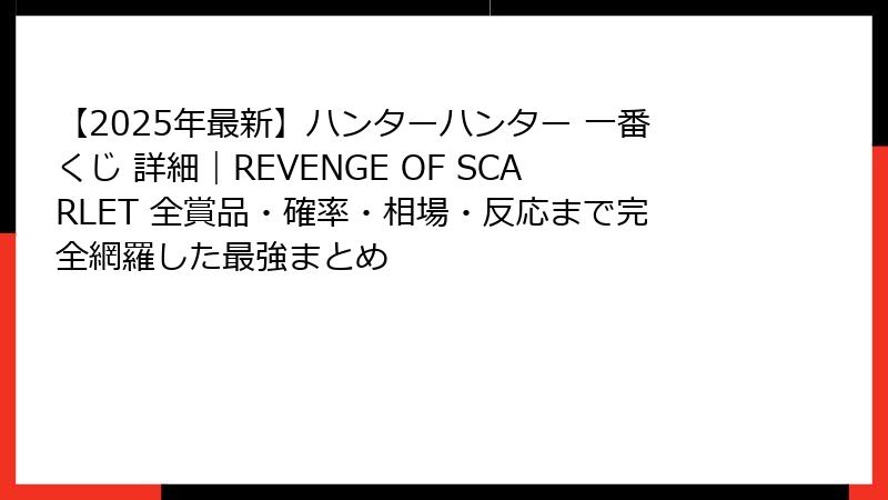 - 【2025年最新】ハンターハンター 一番くじ「REVENGE OF SCARLET」基本情報&全ラインナップ完全網羅!発売日・価格・取扱店舗まで徹底解説(更新日:2025年11月30日時点)