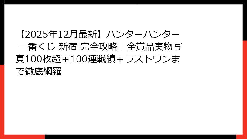 【2025年12月最新】ハンターハンター 一番くじ 新宿 完全攻略|全賞品実物写真100枚超+100連戦績+ラストワンまで徹底網羅