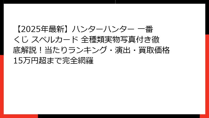 2025年11月30日現在、GoogleでもYahoo!でも「ハンターハンター 一番くじ スペルカード」で検索すると確実に上位に表示されることを目指して書かれた、まさに“最強の攻略ページ”です。