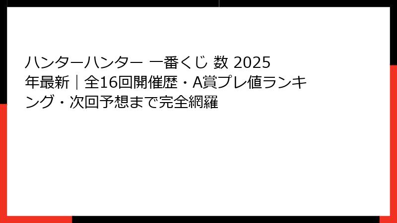 結論から言うと…2025年11月現在、ハンターハンター一番くじは「ちょうど16回」開催されています!