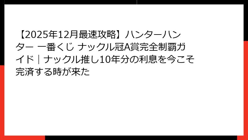 これらの悪意ある言説が、2025年12月の一番くじで完全に粉砕されることになる。