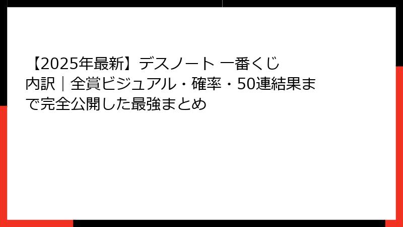 - 【2025年最新】デスノート 一番くじ 2025年くじ全ラインナップ完全公開!全賞内訳まとめ