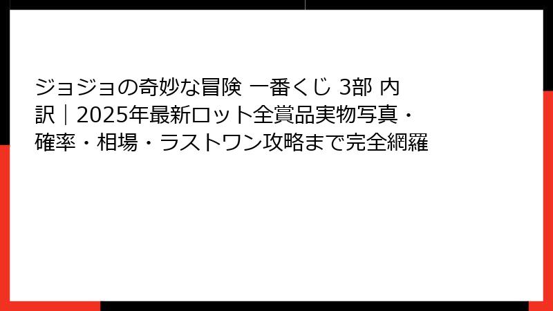 ジョジョの奇妙な冒険 一番くじ 3部 内訳|2025年最新ロット全賞品実物写真・確率・相場・ラストワン攻略まで完全網羅