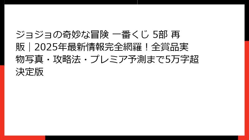 この記事では、再販情報から全賞品詳細、攻略法まで、ジョジョ5部一番くじに関する“全て”を徹底的にまとめました。