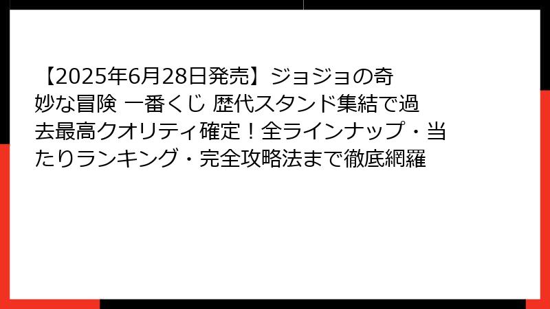 - 発売日・販売店舗・確実に入手するための全攻略法【2025年6月ジョジョ一番くじ 完全生存マニュアル】