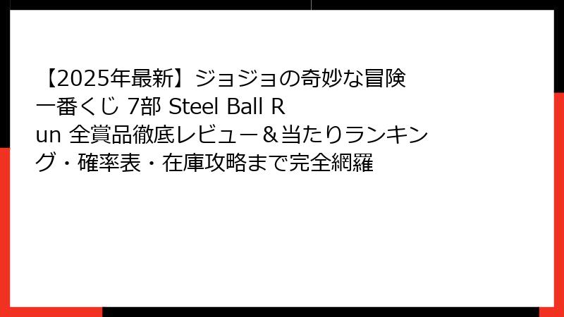 - 【2025年最新】ジョジョの奇妙な冒険 第7部 一番くじ 徹底解説&全ラインナップ公開!待望のSteel Ball Runが史上最高クオリティで降臨