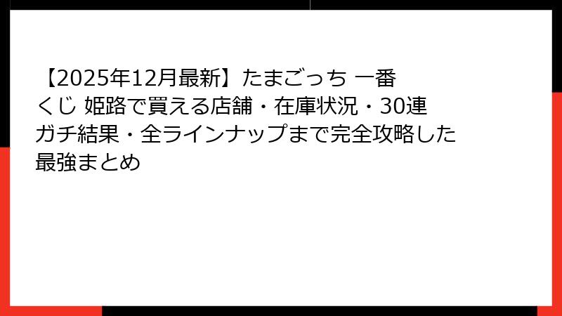 - 【最新12月1日21時更新】姫路でたまごっち一番くじが今どこに残っているか完全網羅!店舗別残本数・上位賞残り状況・明日入荷情報まで全部載せました