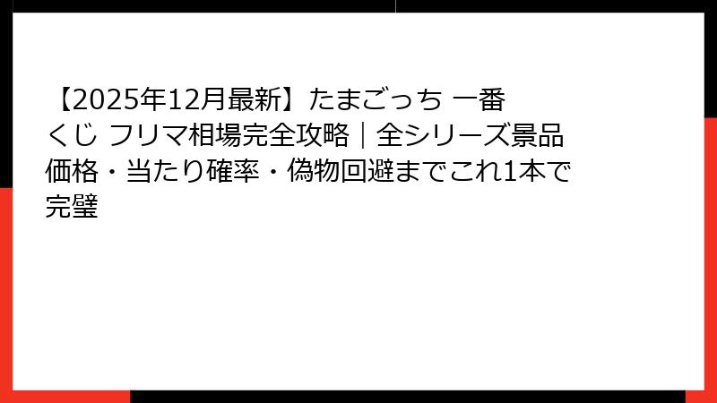 - 今すぐ行動すべき人・待つべき人の判断基準2025~2026年のたまごっち一番くじ予想&最終結論