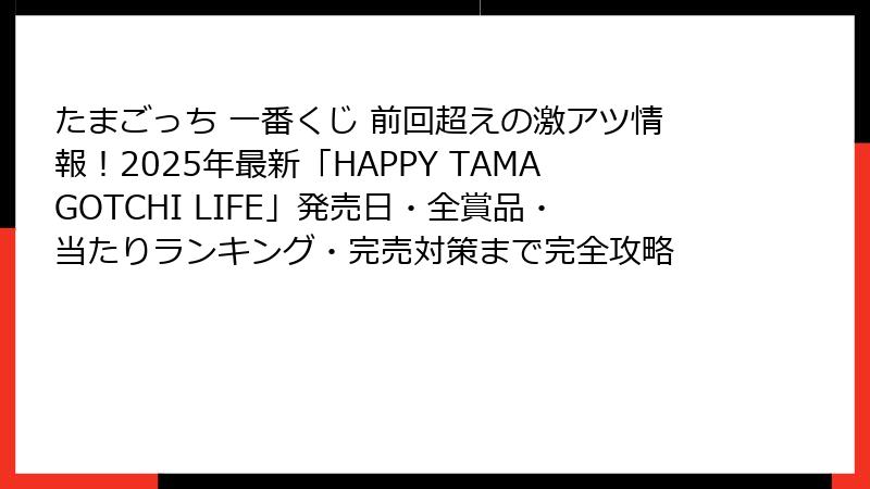 たまごっち 一番くじ 前回超えの激アツ情報!2025年最新「HAPPY TAMAGOTCHI LIFE」発売日・全賞品・当たりランキング・完売対策まで完全攻略