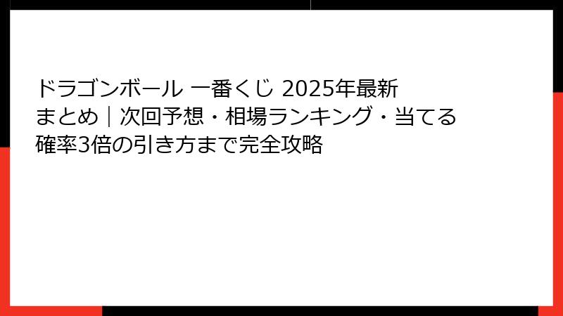 - ドラゴンボール一番くじ 当てる確率を3倍にする引き方・店舗攻略完全ガイド【2025年最新版】