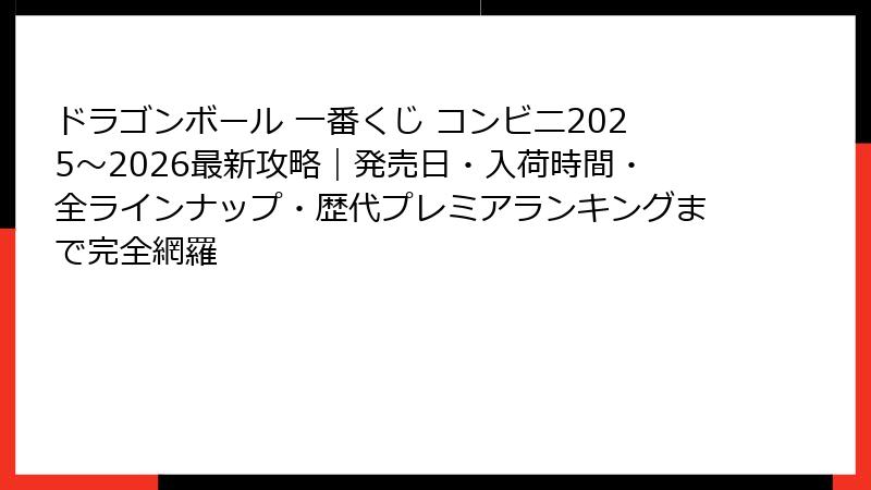 - 【2025年最新】ドラゴンボール一番くじがコンビニで発売決定!即チェックすべき理由