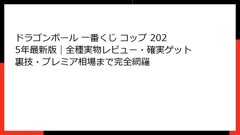 2025年12月現在、絶対に狙いたいドラゴンボール一番くじコップ完全ガイド