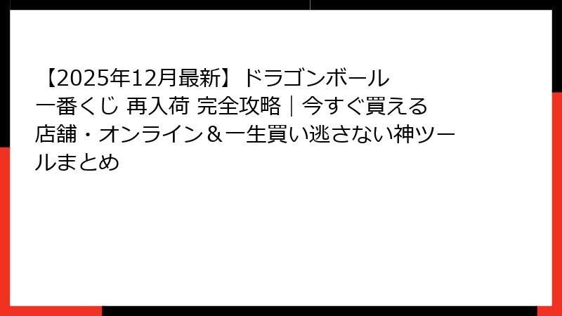 【2025年12月最新】ドラゴンボール 一番くじ 再入荷 完全攻略|今すぐ買える店舗・オンライン&一生買い逃さない神ツールまとめ