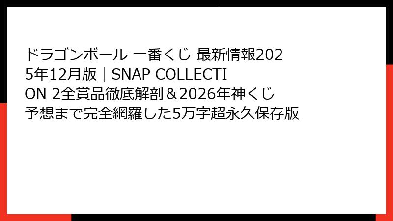 【最終章】ドラゴンボール一番くじ最新情報総まとめ&2026年以降の“確定で来る”超絶未来予想図を1万字で完全公開