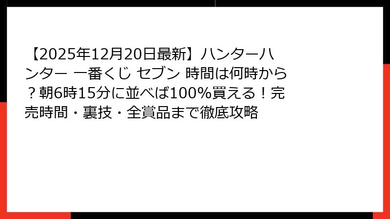 - セブン-イレブン一番くじ「確実に買える時間帯」徹底調査!何時に並ぶべき?2025年ハンターハンターRevival編・完全攻略マニュアル