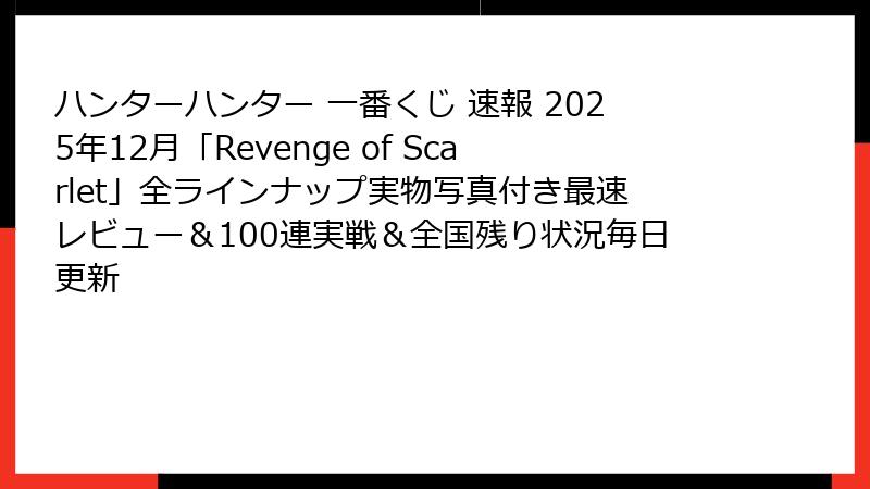 ハンターハンター 一番くじ 速報 2025年12月「Revenge of Scarlet」全ラインナップ実物写真付き最速レビュー&100連実戦&全国残り状況毎日更新