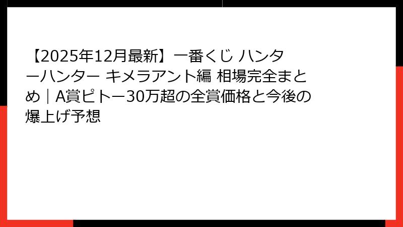 この先、約1万文字以上かけて、あなたが今知りたい「一番くじ ハンターハンター キメラアント編の相場」の全てを、根拠データと共に徹底解説していきます。
