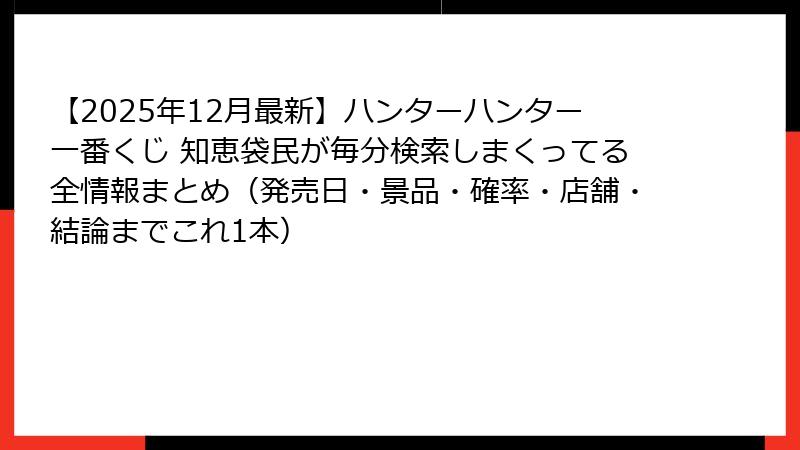 【2025年12月最新】ハンターハンター一番くじ 知恵袋民が毎分検索しまくってる全情報まとめ(発売日・景品・確率・店舗・結論までこれ1本)