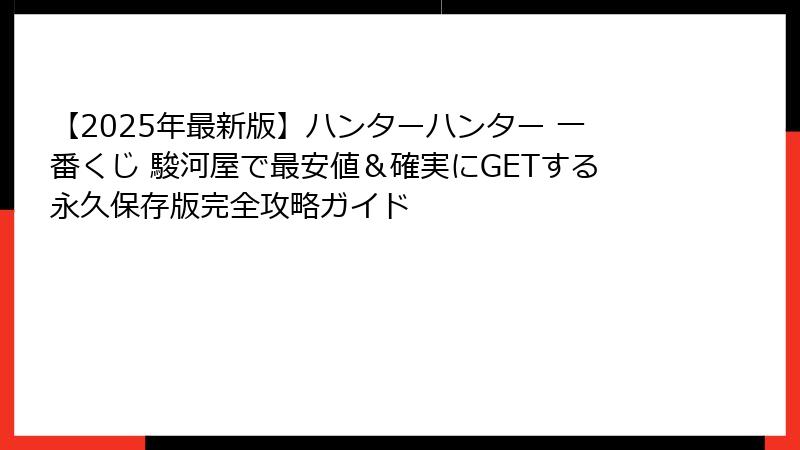 【2025年最新】ハンターハンター一番くじを駿河屋で最安&確実にGETする方法まとめ