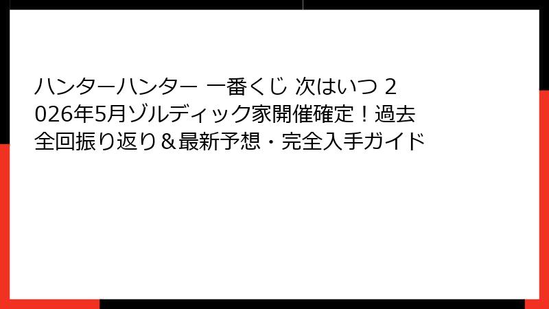 ハンターハンター 一番くじ 次はいつ 2026年5月ゾルディック家開催確定!過去全回振り返り&最新予想・完全入手ガイド