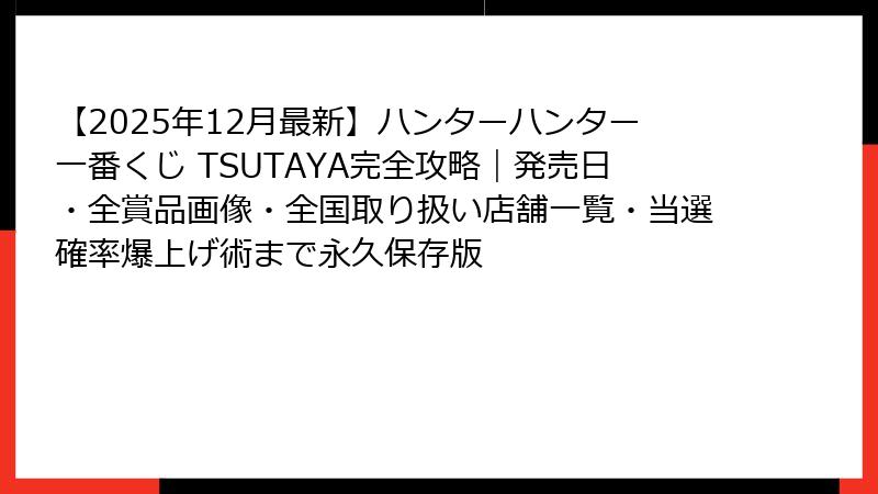 - 【2025年最新】ハンターハンター一番くじがTSUTAYAに登場!開催期間・取扱店舗・全ラインナップまとめ