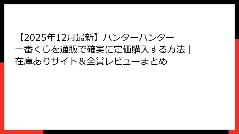 - 今すぐハンターハンター一番くじを最安&確実に手に入れよう!2025年12月1日最終おすすめ通販ランキング&完全まとめ