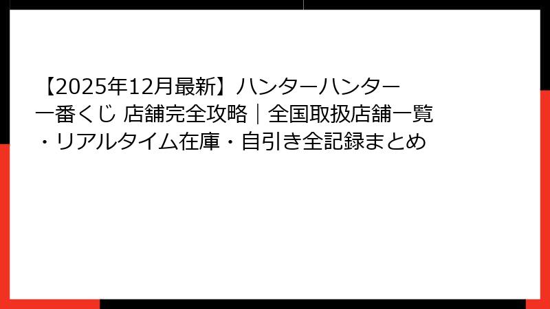 【2025年12月最新】ハンターハンター一番くじ 店舗完全攻略|全国取扱店舗一覧・リアルタイム在庫・自引き全記録まとめ