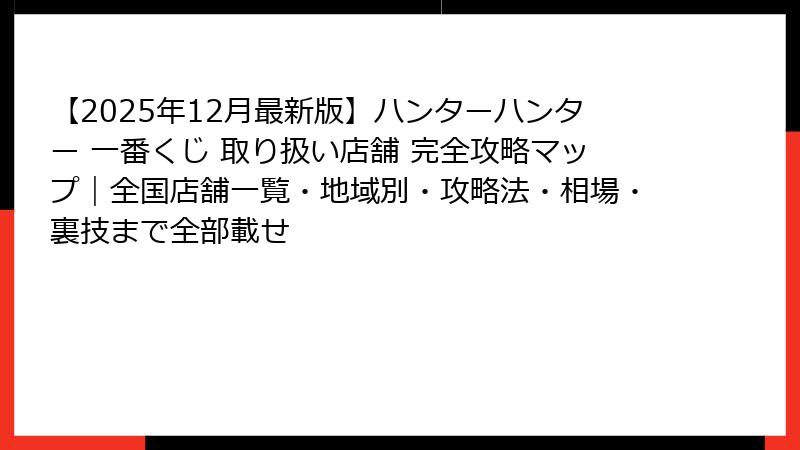 - 【最新】ハンターハンター 一番くじ 取り扱い店舗一覧|2025年最新版
