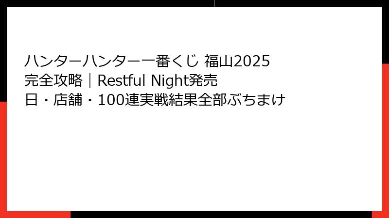 以上が、2025年12月現在の「ハンターハンター一番くじ Restful Night」を福山で確実にゲットするための完全攻略情報でした。