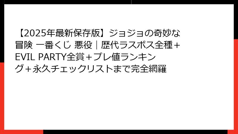 【2025年最新保存版】ジョジョの奇妙な冒険 一番くじ 悪役|歴代ラスボス全種+EVIL PARTY全賞+プレ値ランキング+永久チェックリストまで完全網羅
