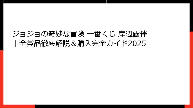 FAQセクション:ジョジョの奇妙な冒険 一番くじ 岸辺露伴に関するよくある質問と回答