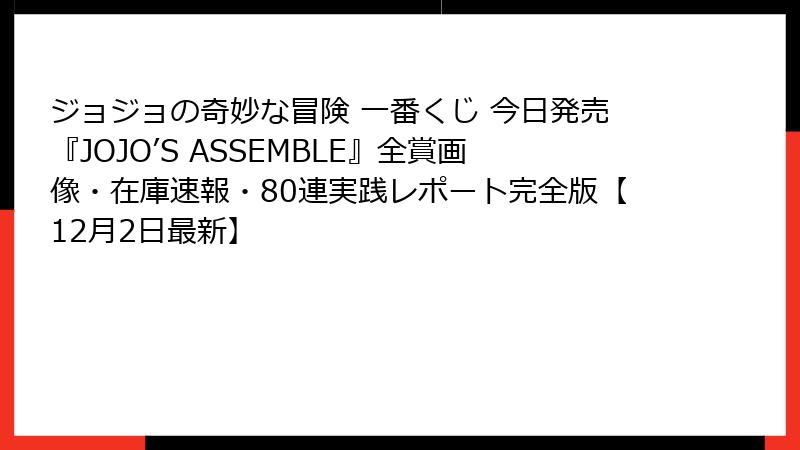 - 【速報】本日12月2日発売!ジョジョの奇妙な冒険 一番くじ『JOJO’S ASSEMBLE』詳細まとめ