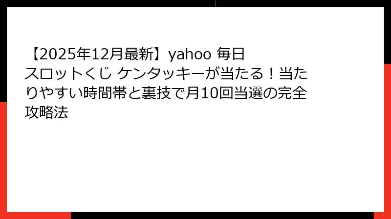 【2025年12月最新】yahoo 毎日スロットくじ ケンタッキーが当たる!当たりやすい時間帯と裏技で月10回当選の完全攻略法