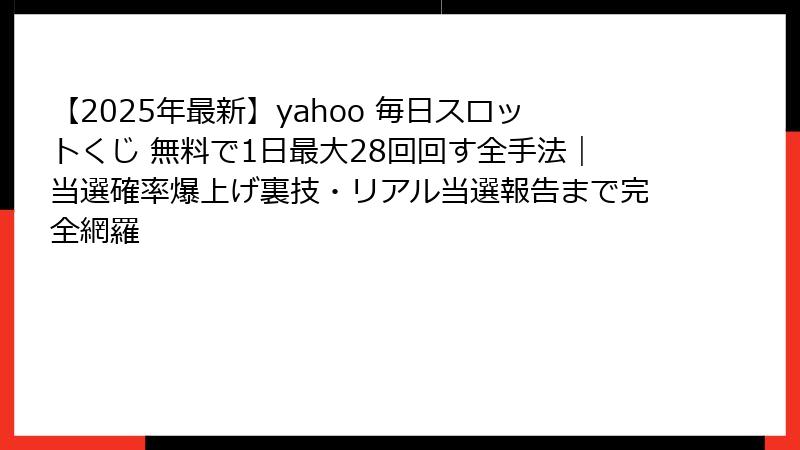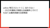 以上が、2025年12月現在の「Yahoo! 毎日スロットくじ」の全貌です。