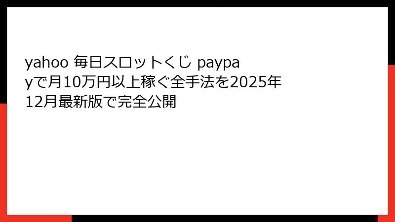 yahoo 毎日スロットくじ paypayで月10万円以上稼ぐ全手法を2025年12月最新版で完全公開