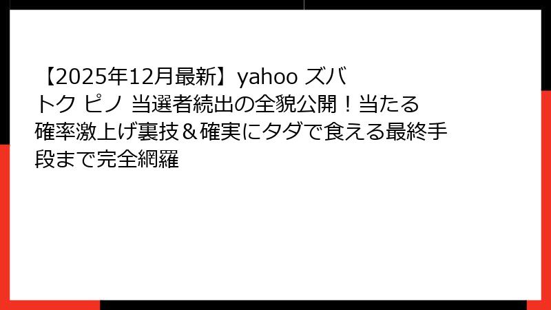 - 当選確率を劇的に上げる7つの裏技(2025年最新版)
