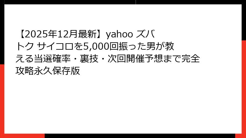 【2025年12月最新】Yahoo!ズバトク「サイコロひくだけ」キャンペーン完全攻略ガイド&何が出るか徹底検証!