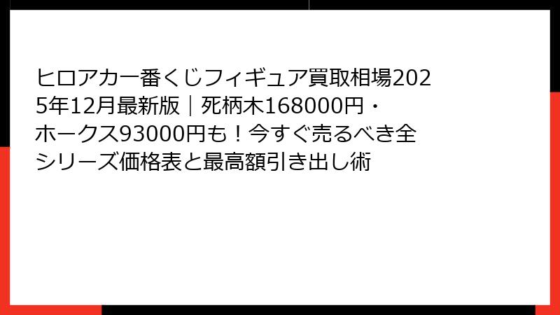 「ヒロアカの一番くじフィギュア、引いたはいいけど置き場所が…」「推しが出たけど、もう飾りきれない…」「急に現金が必要になった…」そんなあなたに朗報です!2025年12月現在、僕のヒーローアカデミア一番くじフィギュアの買取相場が過去最高レベルで高騰しています。