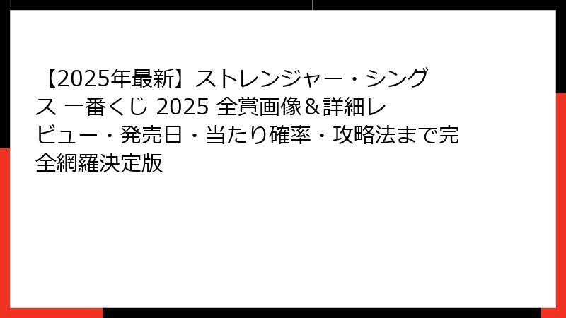 それでは、早速本題に入ろう――2025年最大のくじイベント、「ストレンジャー・シングス 一番くじ 2025」の全貌を、今ここに完全公開する。