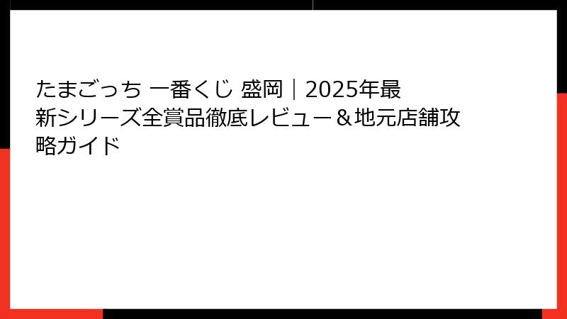 - 盛岡で話題沸騰!たまごっち一番くじの魅力と最新情報まとめ