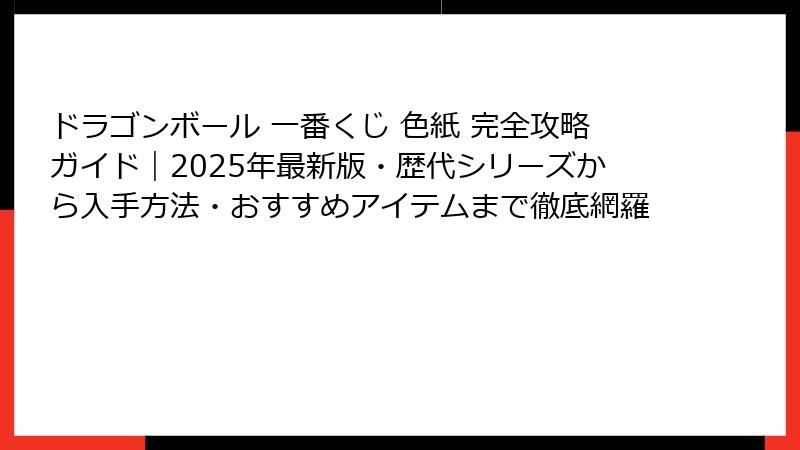 - ドラゴンボール 一番くじ 色紙の入手方法と賢い購入Tips